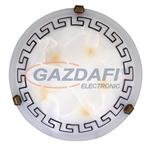 Mediterrán, mégis időtlen stílusú mennyezeti lámpa festett búrával. Fém lámpatest 1 darab E27-es foglalattal, festett, görög mintás opálüvegbúrával, bronz színű rögzítőkörmökkel, 30 cm-es átmérővel. A lámpatest E27-es foglalatú, max. 60W teljesítményű halogén, vagy LED fényforrással is használható. Kialakításának köszönhetően a fényforrás cseréje és a lámpatest tisztítása könnyen elvégezhető.