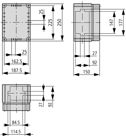 Gyártó EATONAnyag MűanyagGyártói cikkszám 010408IP Védettség IP 65Típus CI23X-125Vonalkód / EAN-kód 4015080104087Rögzítési módszer - EF000003 Felületre szerelhető (Surface mounted)Védelmi osztály az IEC 61140 szerint - EF000004 IISzín - EF000007 Szürke (Grey)Szélesség - EF000008 187.5Magasság - EF000040 250Mélység - EF000049 150RAL szám - EF000116 7035Szerelőlemez nélkül - EF000118 NemFelületvédelem - EF000139 Egyéb (Other)Beépített mélység - EF000218 125Sorosztályok száma - EF000266 0Fedőanyag típusa - EF000339 Opcionális (Optional)Kábeltovábbító bejáratok száma - EF000437 0Kiterjesztés lehetséges - EF001088 NemBelső mélység - EF001131 125Ház anyaga - EF001596 Műanyag (Plastic)Áramkör integritás - EF001613 Egyéb (Other)Szélesség moduláris távolságok számában - EF002950 9Külső használatra alkalmas - EF003532 IgenÜtésállóság - EF004293 IK10Modulok száma - EF004427 1Ajtó típusa - EF004464 Nincs (None)Védettségi fokozat (IP) - EF005474 IP65Átlátszó burkolat/ajtó - EF006244 IgenZárral - EF006306 NemVillámvédelmi célra alkalmas - EF007800 IgenNévleges áram (In) - EF008873 1600Szekrény anyaglemez vastagság - EF009170 9Anyaglemez vastagság ajtó/fedél - EF009171 6Fedőmodell - EF009212 Zárt (Closed)Flangelemezek nyílások száma - EF009554 0Védelem foka (NEMA) - EF011959 Egyéb (Other)Túlnyomás-mentesítő fedelekkel - EF015940 IgenGyártó EatonNumar articol 010408