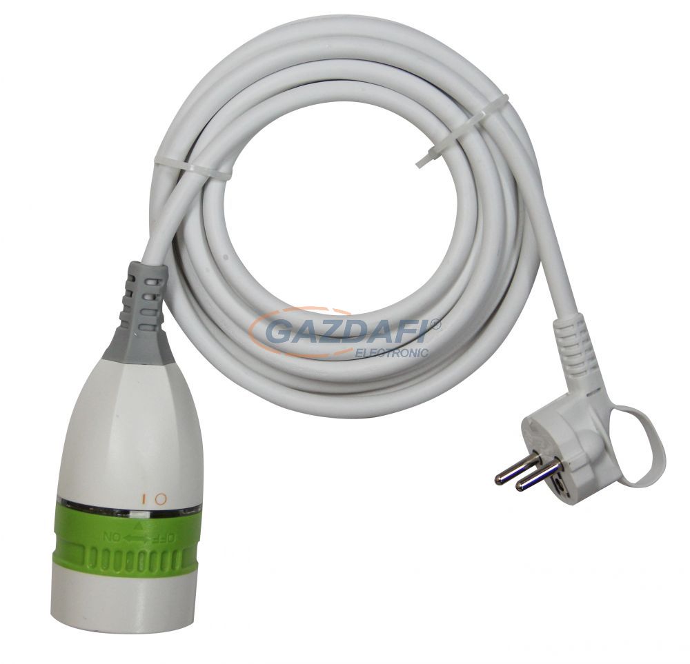 3x1,5mm2 H05VV-F fehér kábellel, forgatással kapcsolható aljzattal és könnyen kihúzható helytakarékos dugvillával.