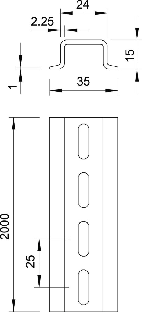 OBO 1115596 2069 15 2.2 GTPL Kalapsín perforálás nélkül, 2000mm galvanikusan horganyzott acél, átlátszóra passziválva [FAD]