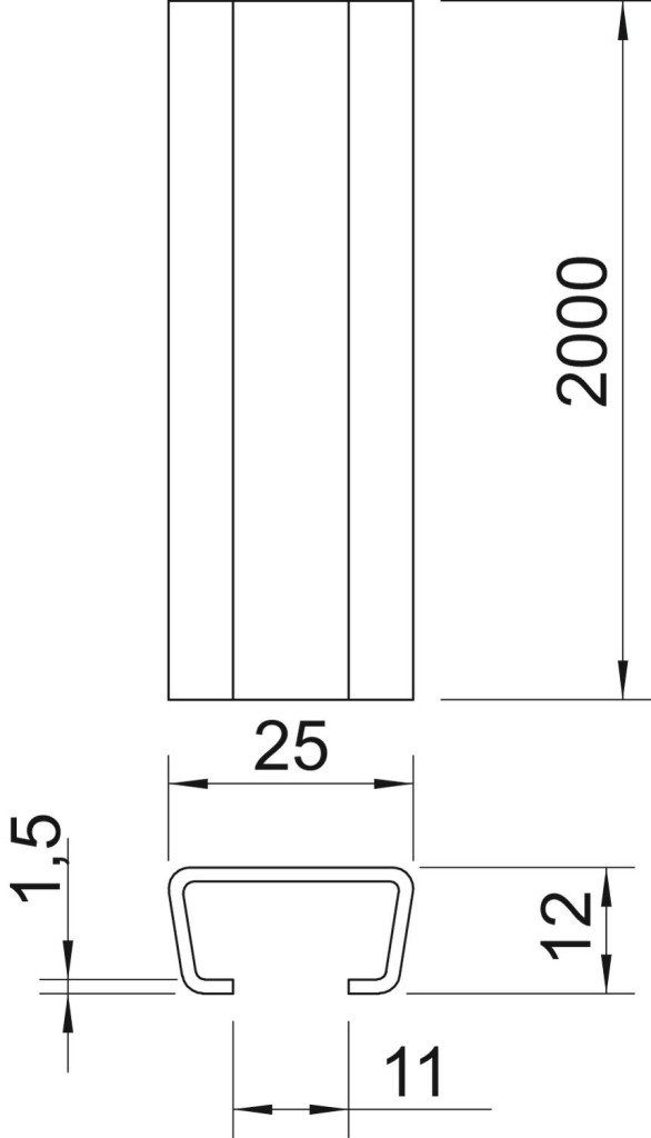 OBO 1117068 CL2512UP2000A2 Profilsín 11mm résméret, perforálatlan, 2000mm