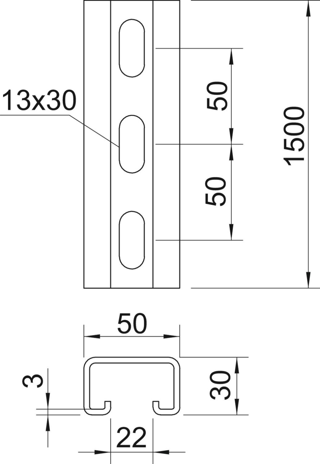 OBO 1121363 MS5030P1500FT Profilsín, perforált AMS3518, 16,5 mm résszélesség, 1500mm merítetten tűzihorganyzott acél [FAD]