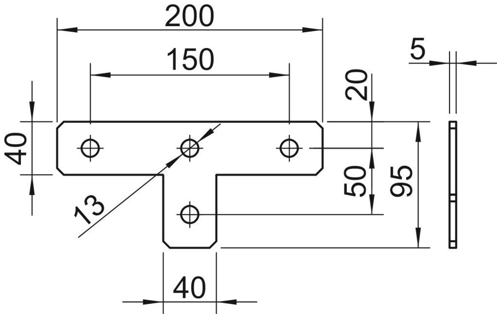 Összekötő lemez 4 furattal 41 x 41 mm és 41 x 21 mm méretű profilsínek T-alakú összekötéséhez.