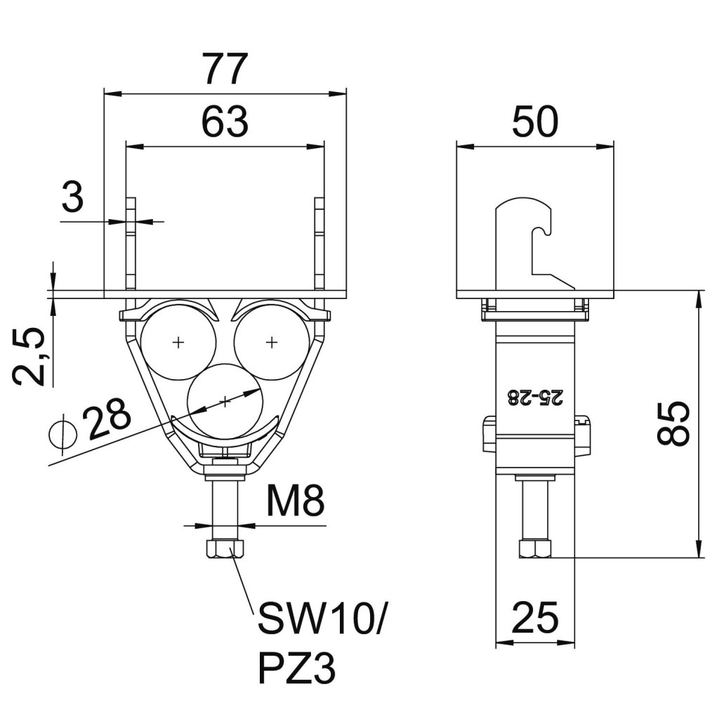 OBO 1174509 2056U-E28 FT Kengyeles Bilincs 3 egyerű kábelhez 25-28mm merítetten tűzihorganyzott acél