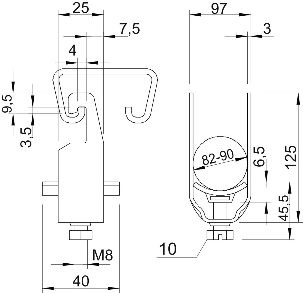 OBO 1175904 2056U 90 FT Kengyeles Bilincs 82-90mm merítetten tűzihorganyzott acél