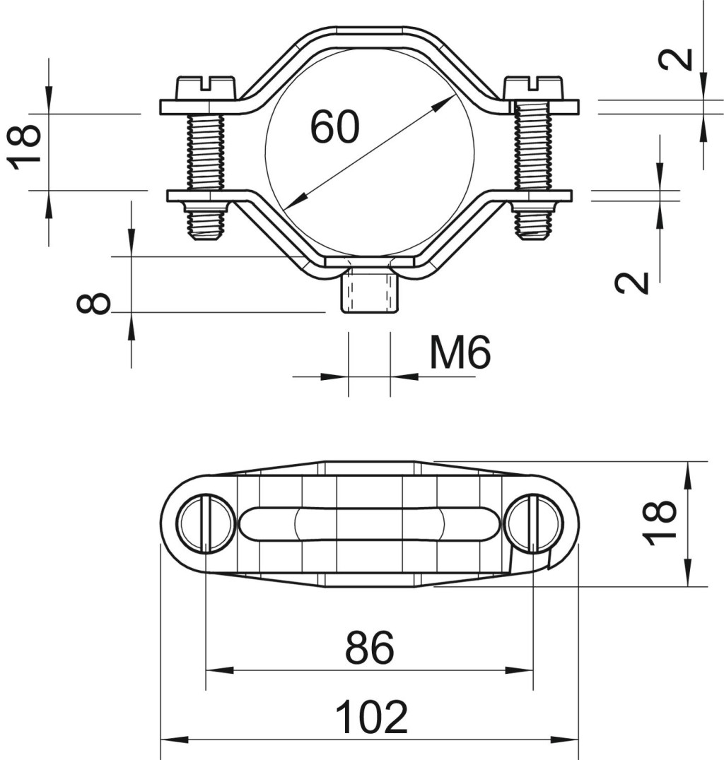 OBO 1380729 2073 M6 G Távtartó Kengyel M6 menetes csatlakozóval, univerzális 44-60mm galvanikusan horganyzott acél