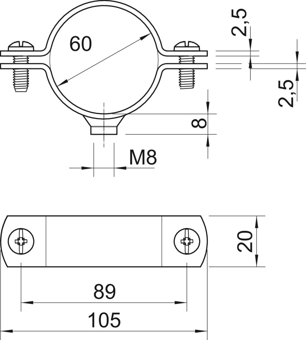 OBO 1387138 2900WM8 60 FT Távtartó Kengyel M8 menetes csatlakozóval, nehéz kivitel 2 merítetten tűzihorganyzott acél