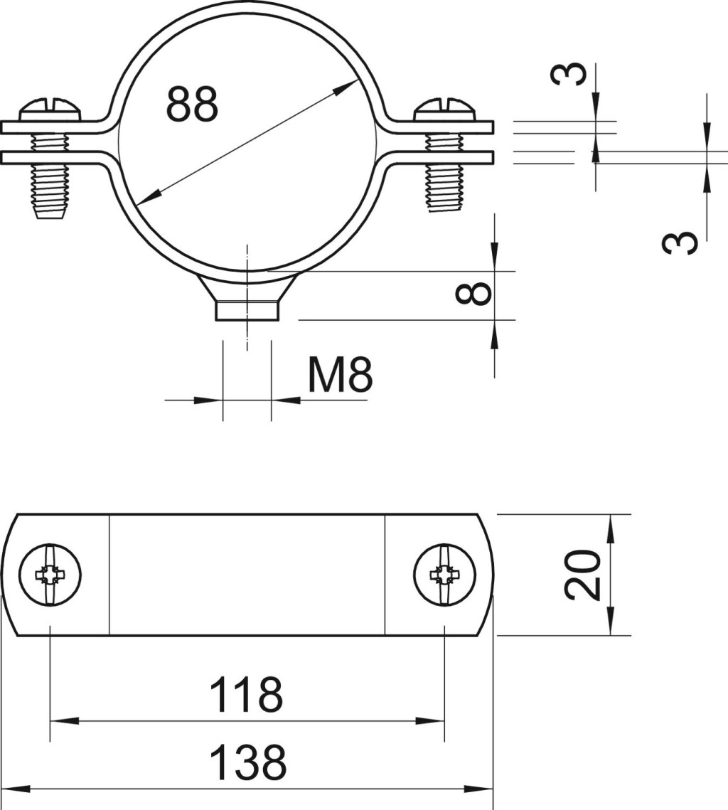 OBO 1387170 2900WM8 88 FT Távtartó Kengyel M8 menetes csatlakozóval, nehéz kivitel 3 merítetten tűzihorganyzott acél