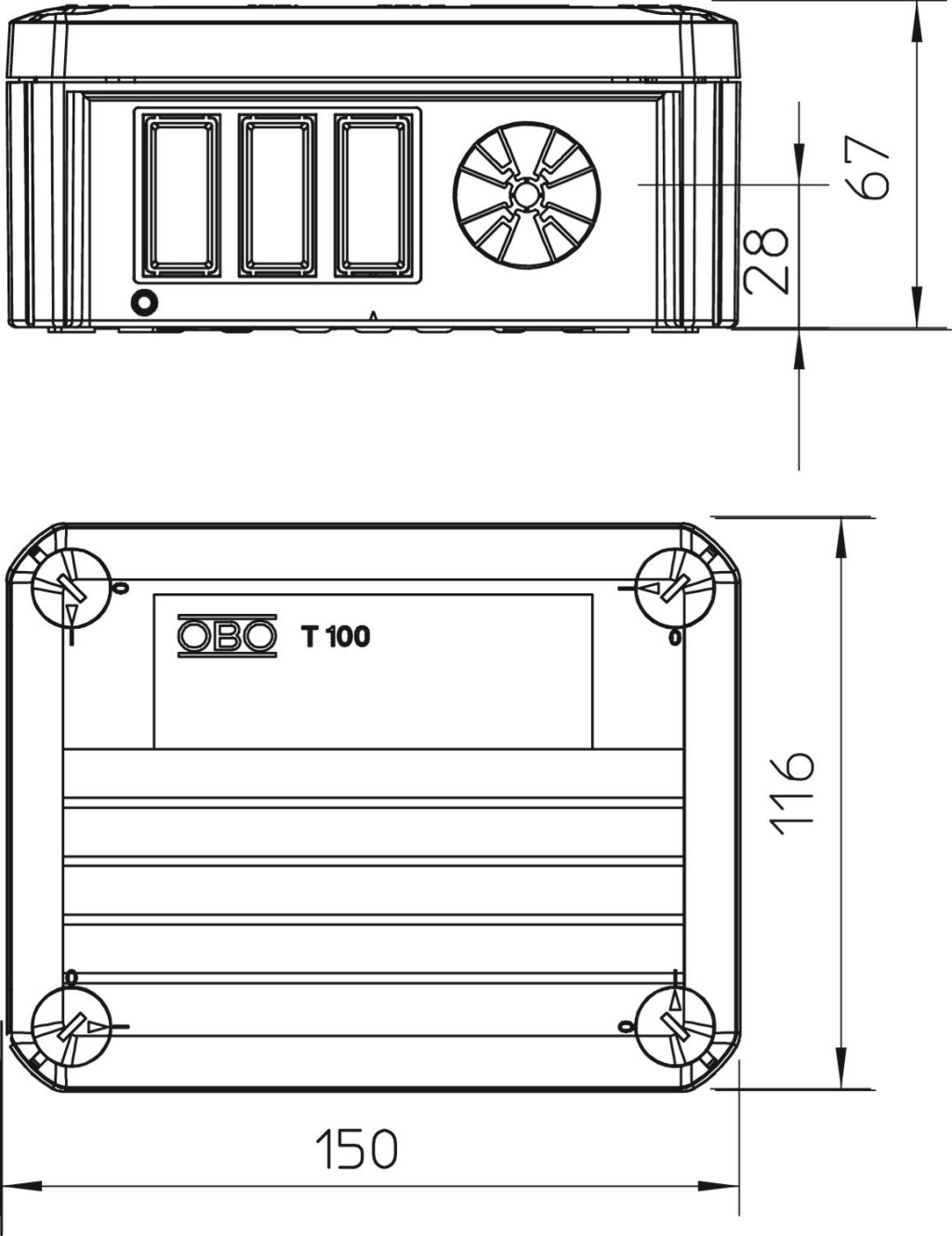 OBO 2007807 T 100 WB3 Cutie de joncțiune fără conector Wieland 150x116x67mm polipropilenă