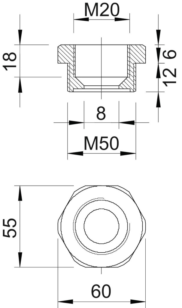 OBO 2030655 107 R M50-20 PA Szűkítő M50-M20 világosszürke poliamid