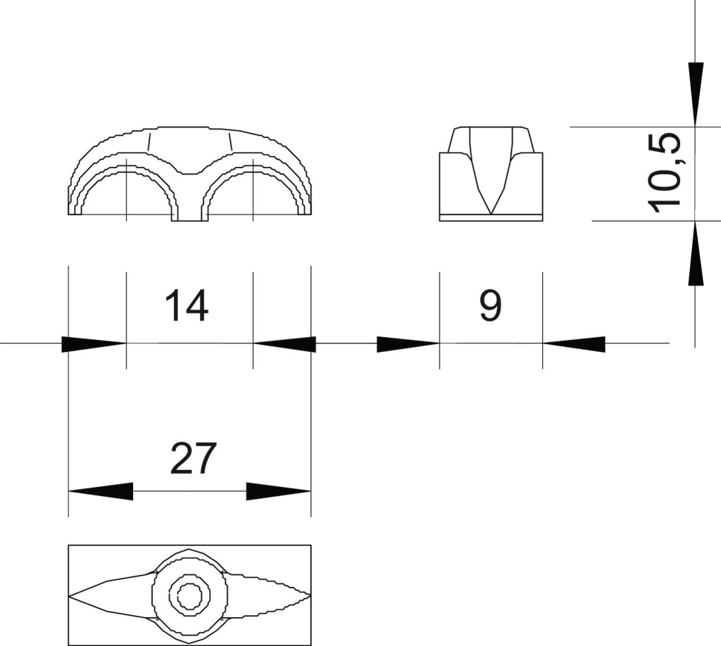 Szegezhető bilincsek 2 vezeték rögzítéséhez, 2 mm-es acélszegekhez.