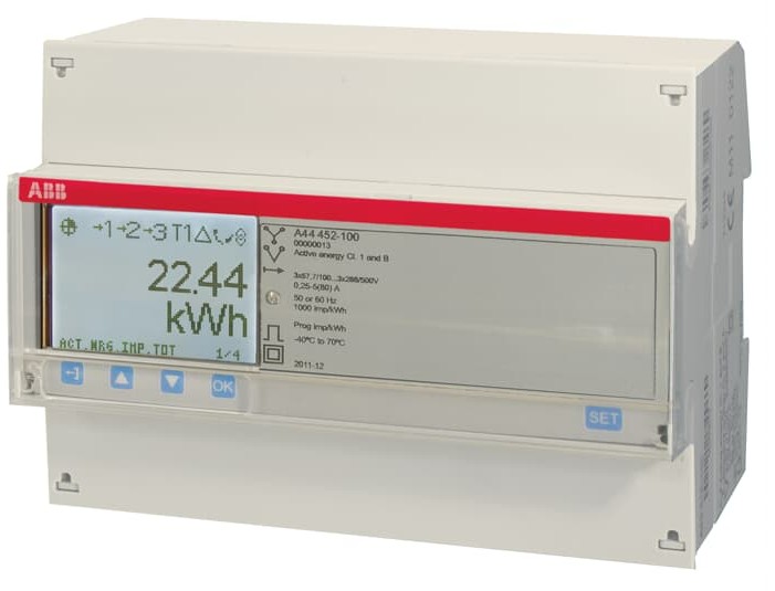 ABB 2CMA170540R1000 A44 452-100 Háromfázisú fogyasztásmérő, 3x57/100-288/500V AC; 2 kimenet - 2 bemenet; ÁV (6A)