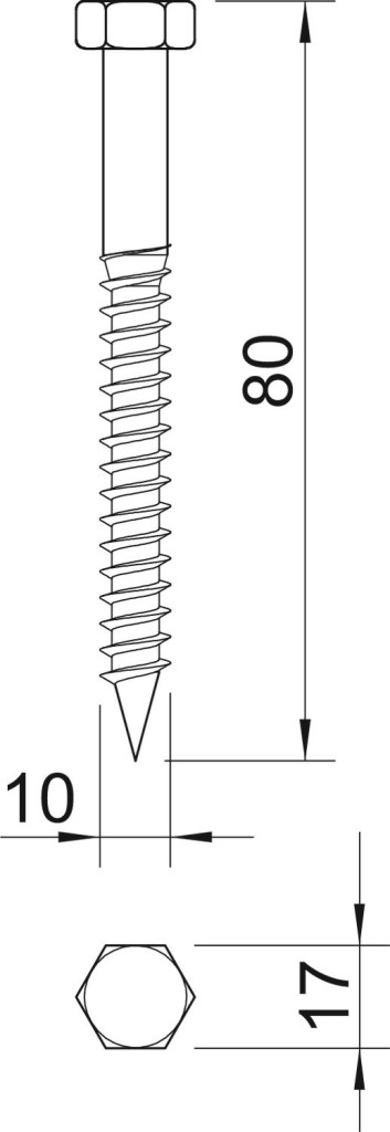 DIN 571 szerinti hatlapfejű csavar, facsavarmenettel. 910 típusú dübelhez alkalmas.