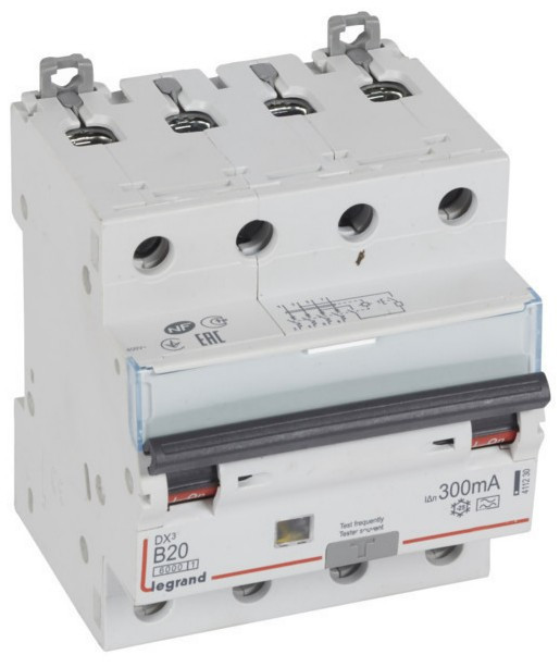 LEGRAND 411230 DX3 4P kombinált áram-védőkapcsoló B20 6000A / 10kA 300mA A típus