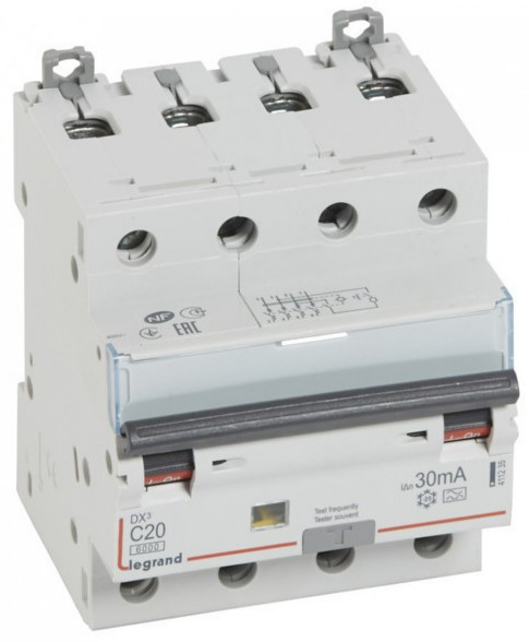 LEGRAND 411235 DX3 4P kombinált áram-védőkapcsoló C20 6000A / 10kA 30mA A típus
