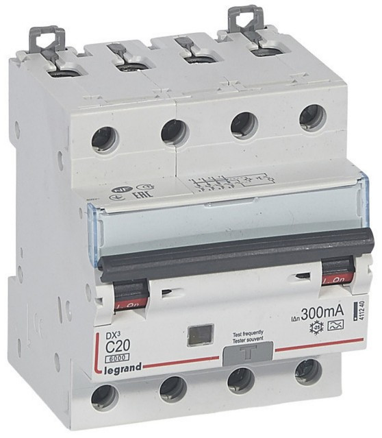 LEGRAND 411240 DX3 4P kombinált áram-védőkapcsoló C20 6000A / 10kA 300mA A típus