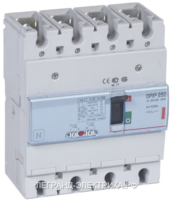 LEGRAND 420245 DPX3 250 100A 4P termikus mágneses 36kA kompakt megszakító