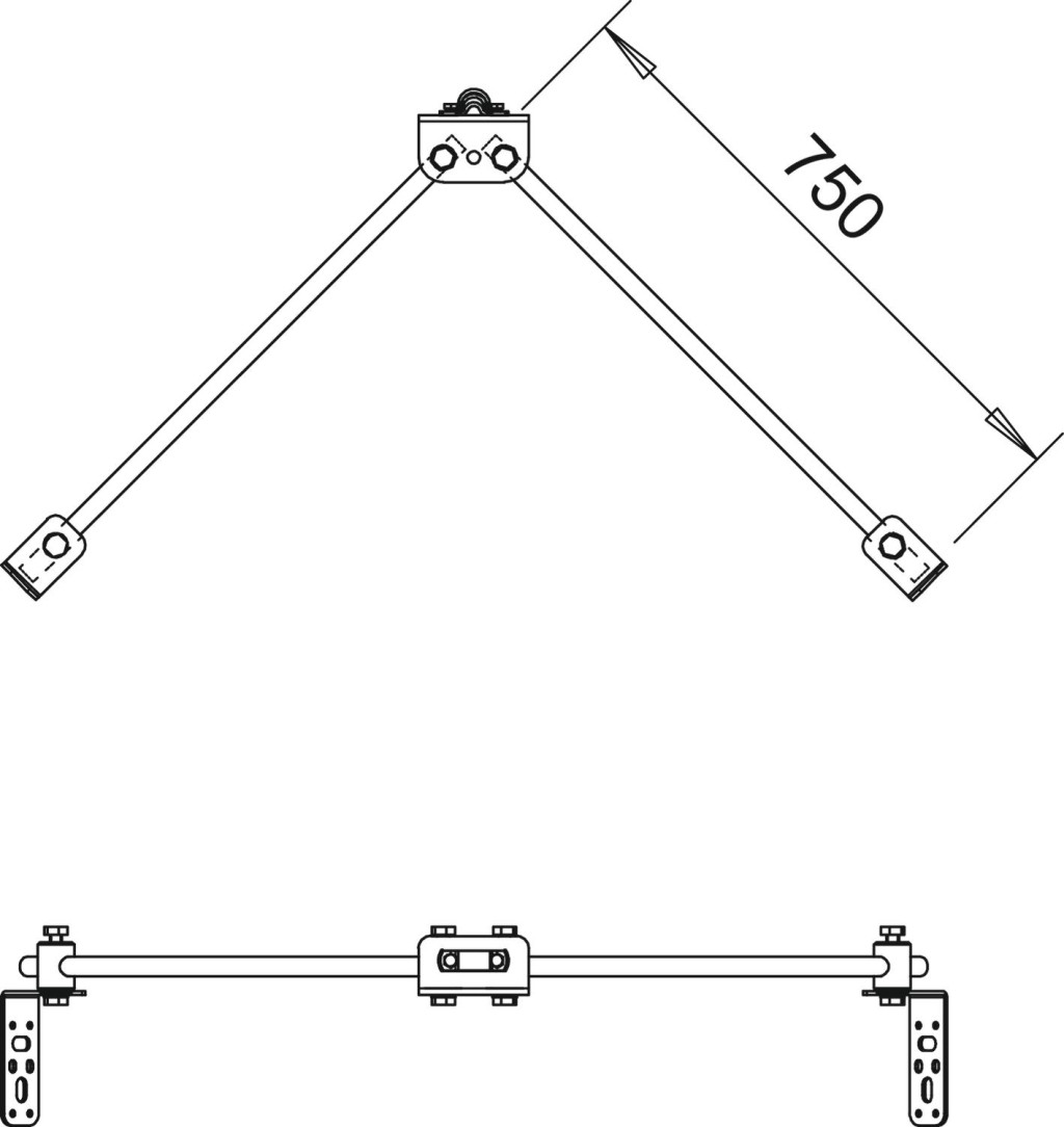 Elszigetelt felfogó V-alakban történő stabilizálásához, s<0,5 m (levegőre vonatkozó) biztonsági távolság esetén