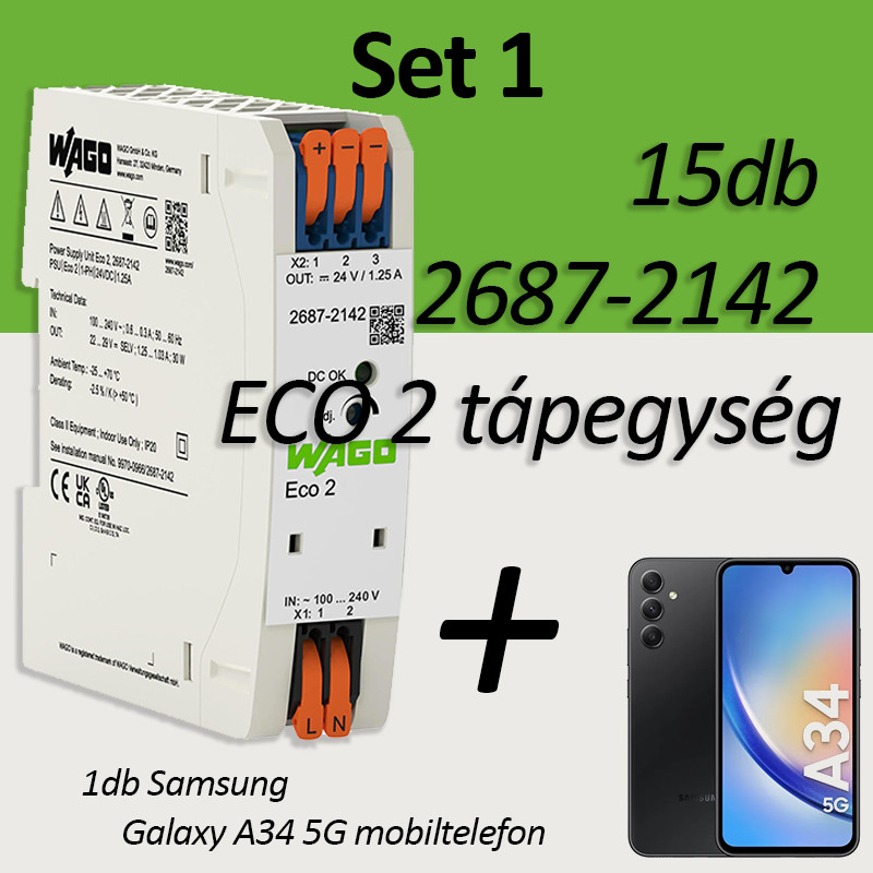 WAGO 60530492 Set1: 15db 2687-2142 ECO 2 tápegység + Samsung Galaxy A43 5G mobiltelefon
