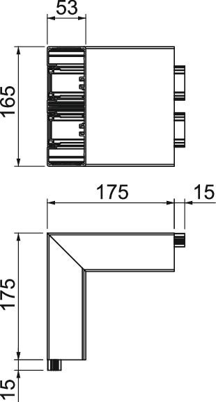 90°-os külső sarokelem Rapid 45-2 GA... szerelvénybeépítő csatornák irányváltásához.