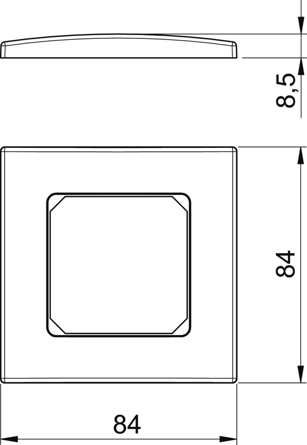 Előlröl bepattintható takarókeret 50 mm-es központi lemezzel rendelkező szerelvény beépítéséhez, egyes, felirati mező nélkül hagyományos és 90 fokkal elfordított szerelvény installációhoz, 71GD6, 71GD11 szerelvénydobozhoz, vagy 71MTD szerelvénytartóhoz.