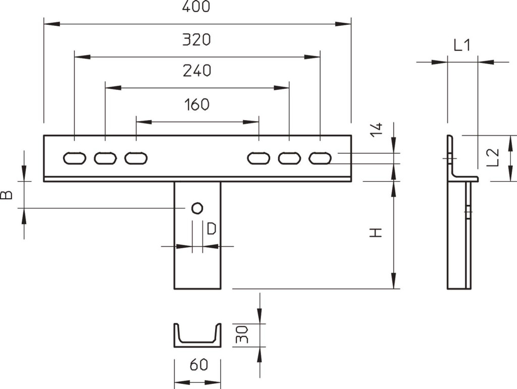 Adapterlemez ovális lyukakkal, függőleges acéltartókra és falakra történő univerzális rögzítéshez.