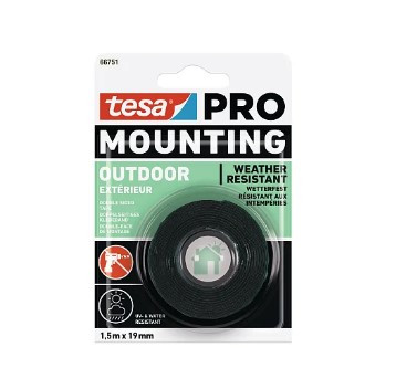 - Erős és tartós: a tesa PRO kültéri rögzítőszalag az elsődleges választás a rögzítési megoldások közül tárgyak falakra történő könnyű és stabil rögzítésére – UV-, víz- és hőálló