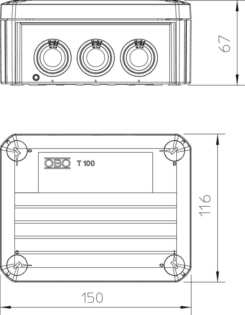 OBO 7205550 T 100 ED 6-6 F Cutie de joncțiune 150x116x67mm portocaliu polipropilenă
