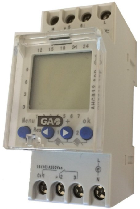 GAO 8138H Időkapcsoló, digitális, heti, DIN sínre 2 modulos , 2 csatornás