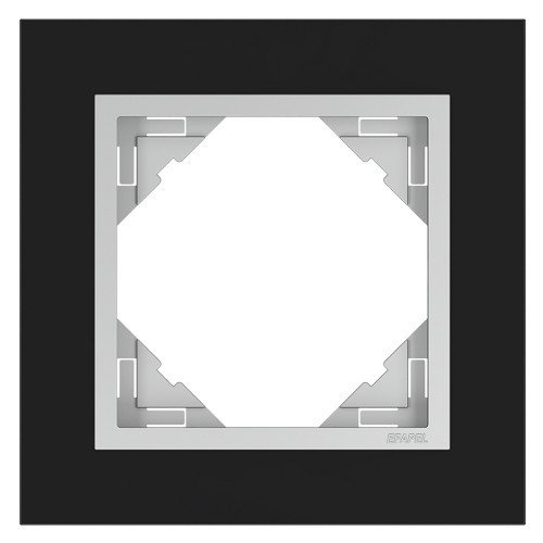 Fekete üveg egyes keret, alumínium színű belső kerettel.
