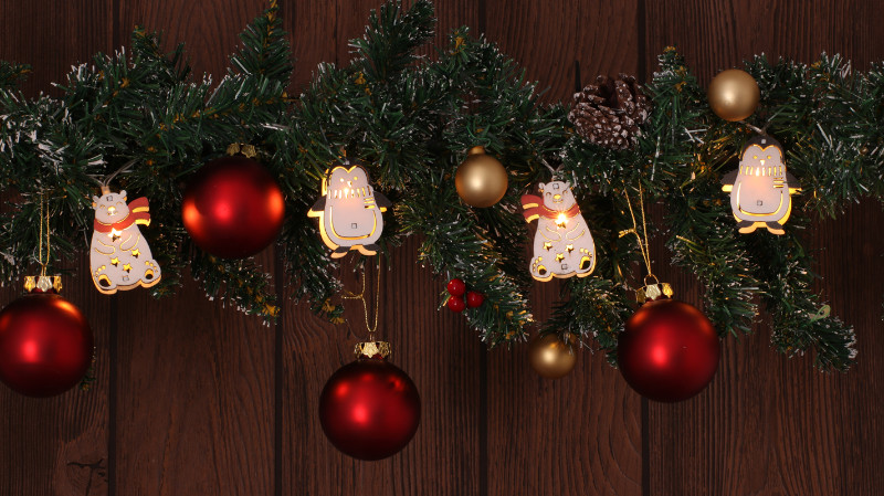 TRACON CHRSTPBW10WW LED karácsonyi lánc, pingvin,medve, elemes (X22072) Timer 6+18h,10LED, 3000K, 2xAA