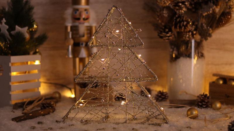 TRACON CHRTRG15GWW LED karácsonyi fenyő, arany, fém, elemes (X22036) Timer 6+18h,15LED, 3000K, 2xAA