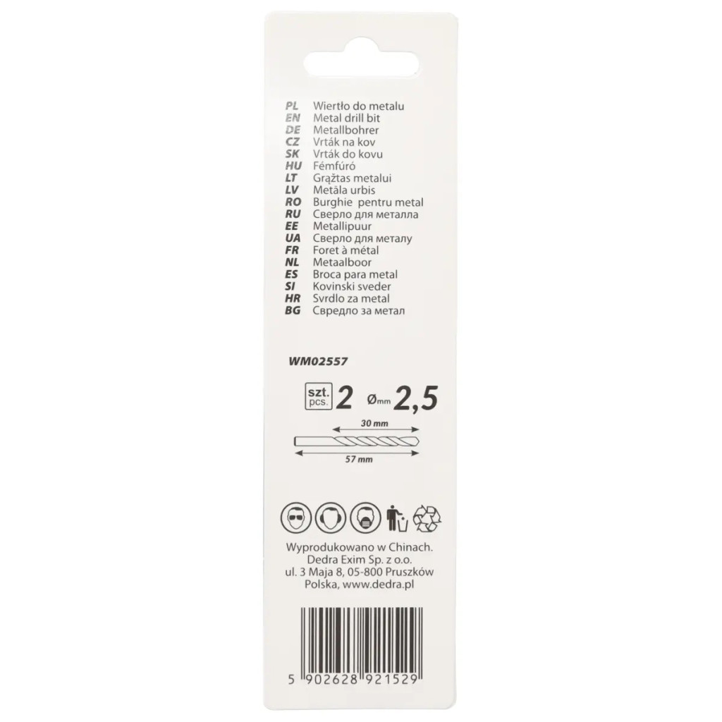 DEDRA WM02557 Fémfúró 2 db/csomag, HSS, DIN338, 2,5x57mm, 135°