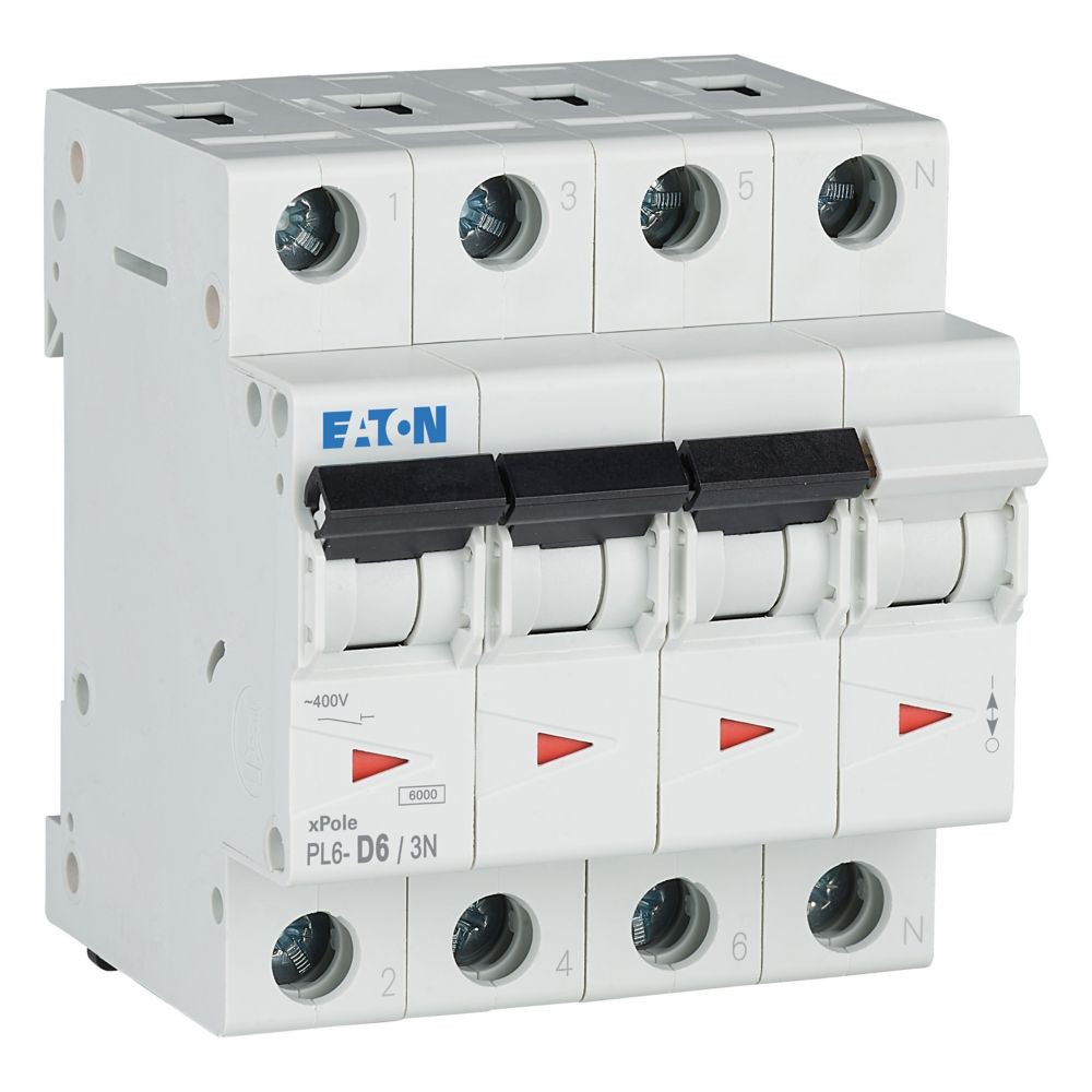 EATON 165046 Kismegszakító, 6kA PL6-D6/3N - 6 A, 3P+N, karakterisztika: D