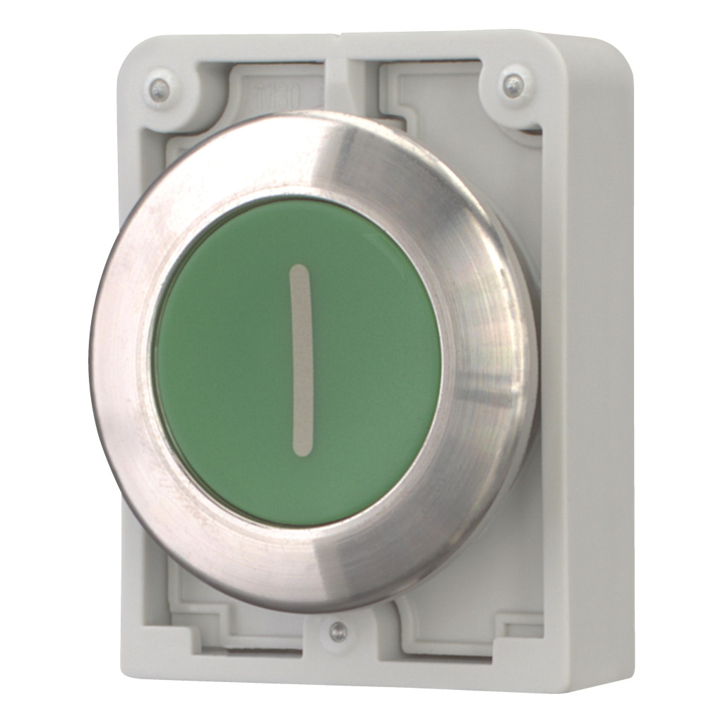 EATON 188100 Nyomógomb vezérlőfej, süllyesztett nyomógomb, reteszelés nélkül, rozsdamentes acél gyűrű, zöld I