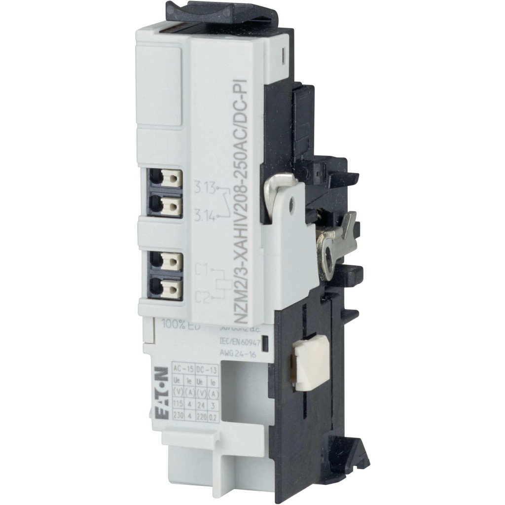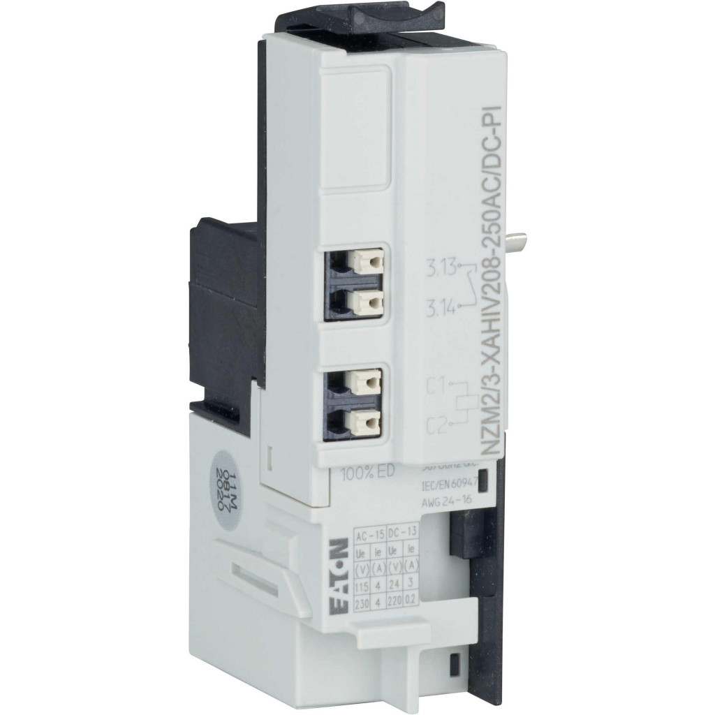 EATON 189815 Kikapcsolás kioldó NZM2, NZM3-hoz, 1 előret. kap. ér.+ 2 kap. ér., 220-250V AC/DC, Push-in csatlak.