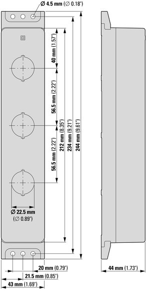 EATON 197640 Szekrény felszíni szereléshez lapos IP67/IP69, 3 szerelési pont M22, műanyag, egyedi leírás