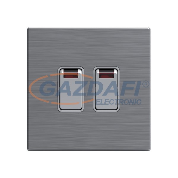 ELMARK 190927 "London" süllyesztett dupla kétpólusú kapcsoló jelzfénnyel, kicsi billenty, 20AX, rozsdamentes acél