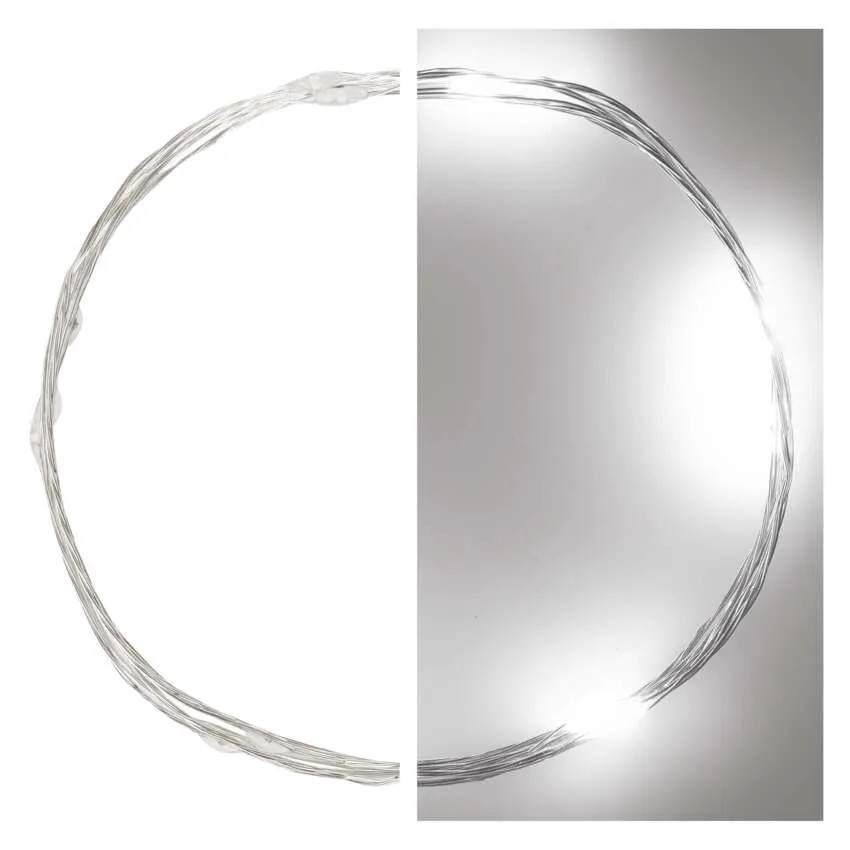 EMOS D3AC06 LED karácsonyi nano fényfüzér, ezüst, 0,9 m, 2x AA, beltéri, hideg fehér, időzítő, 0,6 W, elem (2× AA), IP20 általános leírása: