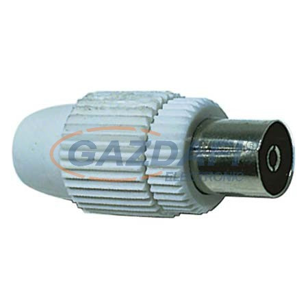 IEC csatlakozóhüvely koaxiális kábel csatlakoztatásához. Fehér szín. Műanyag. 10 darabos kiszerelésben elérhető.