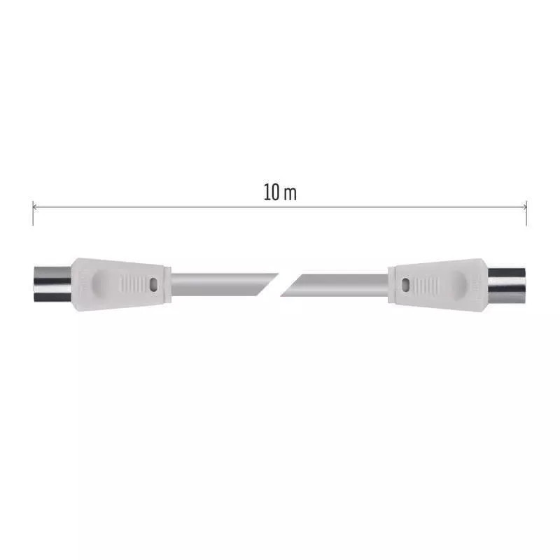 Koaxiális antennakábel IEC csatlakozódugóval és csatlakozóhüvellyel. A kábel kettős árnyékolású az elektromágneses interferencia csökkentése érdekében. 10 m-es kábelhossz.A koaxiális kábel használható műholdvevőhöz, digitális vevőkészülékhez, antennához, átalakítóhoz, síkképernyős tévéhez és hagyományos televízióhoz.