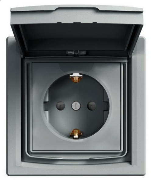 SCHNEIDER EPH3100362 ASFORA 2P+F dugalj csatlakozóaljzat, gyermekvédelemmel, csapfedeles - IP44, acél
