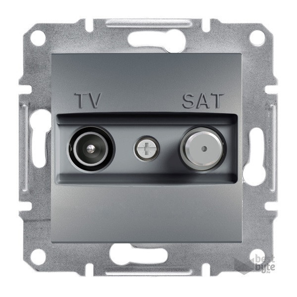 A Schneider Electric Asfora EPH3400162 TV/SAT aljzat, acél színű, rögzítő kerettel ellátott szerelvény. Az áramátvitel ebben a TV/SAT/SAT aljzatban, a SAT csatlakozókon keresztül biztosított. A SAT csatlakozó F-típusú. A TV aljzat végzáró és IEC 9,52 mm típusú. A készülék rögzítőkörömmel ellátott. 71 mm, 71 mm, 42 mm a TV/SAT aljzat mérete, kiálló mélysége 13 mm. Süllyesztett szerelés is lehetséges, vagy kiemelődobozba is felszerelhető. A festett felületkialakítás révén ez a készülék esztétikus, ugyanakkor kivételesen ellenáll a kopásnak és a korróziónak is. Csavaros bekötésű. IP20-as védettséggel rendelkezik. A TV/SAT/SAT aljzat ABS-ből (akrilnitril-butadién-sztirol) áll, ami a lehető legnagyobb ellenállást biztosítja. A rézből készült vezető anyaggal ez az aljzat meglehetősen strapabíró. Emellett rendelkezik a CE minősítéssel is. Zöld prémium termék. Higanymentes és nehézfémmentes, így teljesen környezetbarát. Ezenkívül kifejezetten lakossági, kis kereskedelmi célokra készült, megkönnyítve a mindennapi igények egyszerű és biztonságos kielégítését. Az Asfora család sorozata, villanykapcsolókat, dimmereket, hálózati és kommunikációs aljzatokat, valamint redőnyvezérlőket is tartalmaz. A kecses, elegáns dizájn tökéletesen illeszkedik minden helyiségbe Az Asfora termékek olyan jó minőségű anyagokból készülnek, amelyek idővel sem sárgulnak meg.