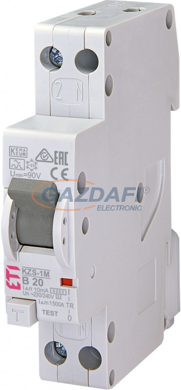 ETI 002175415 KZS-1M 1p+N A B20A 10mA áram-védőkapcsolós kismegszakító