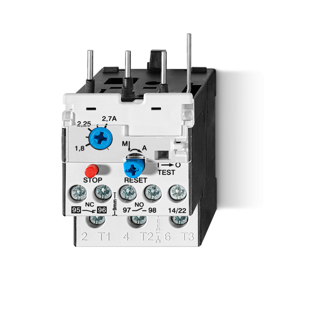 Hőkioldó a 6K.13 és 6K.14 típusú ipari mágneskapcsolókhoz, kioldási osztály az IEC 947-4-1 szerint: 10 A, beállítási tartomány: (10…14)A, kézi és automatikus visszaállítás + RESET-gomb, A csatlakozólábak száma a lábak lehajlításával