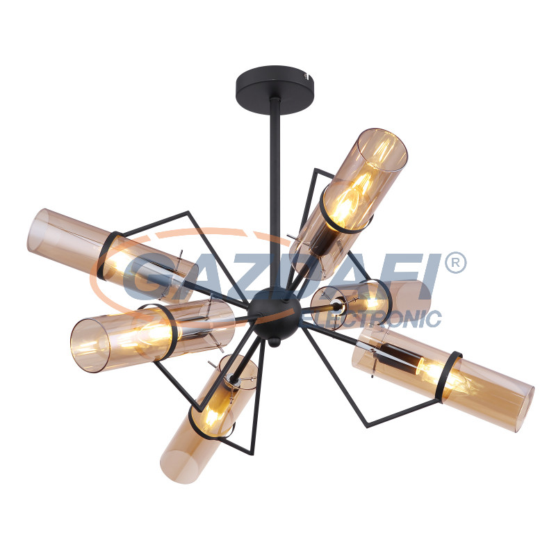 GLOBO 15353-6D GIJON Mennyezeti lámpa, metál fekete fém, borostyán színű üvegbúrával. Ø:659, H:575, exkl. 6xE14 40W 230