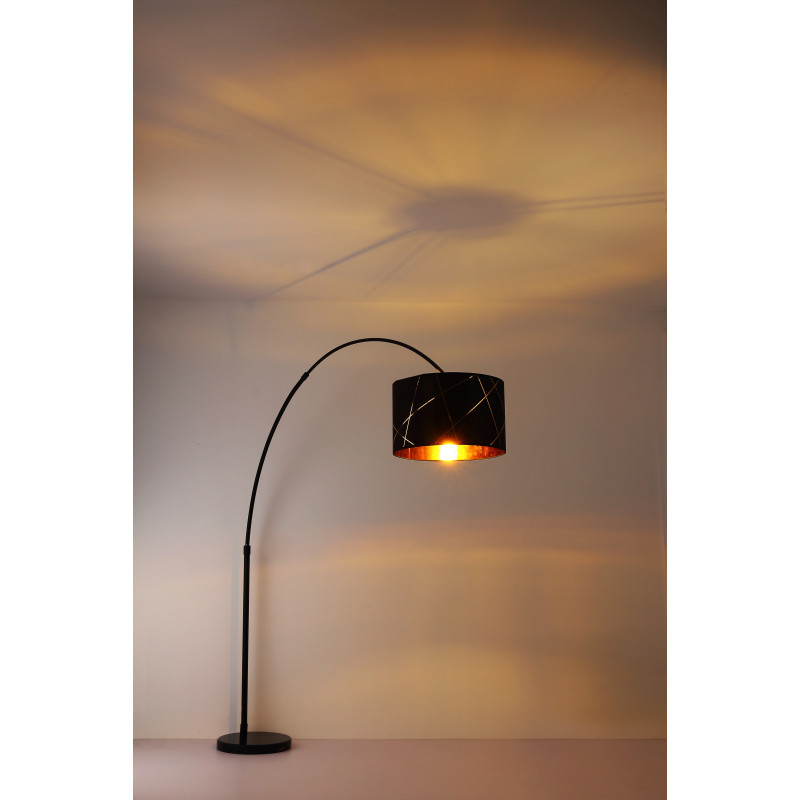 GLOBO 15431S2 BEMMO Állólámpa fém fekete alaplap, fekete-arany szövet búra bemetszésekkel dekorálva. A kábel fekete színű textil. HxSZxM2050x450x2000, exkl. 1xE27 60W 230V