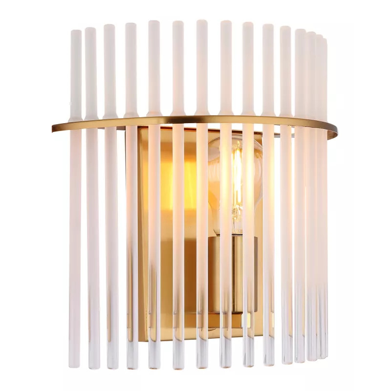 Fali lámpa, fém arany színű matt, fehér/átlátszó színátmenetes üvegrudak, SzxM: 250x260mm, Mélység: 125mm, 1x E27 60W 230V izzó nélkül