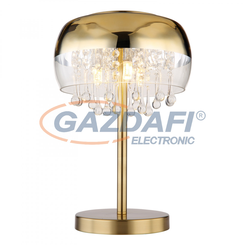 GLOBO 15838T KALLA Asztali lámpa sárgaréz talp, átlátszó üveg búra arany csíkkal díszítve, benne üveg-kristály dekorációval.