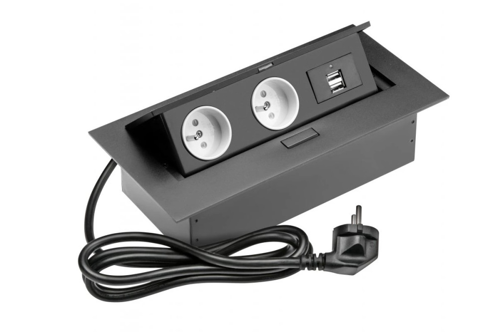 A kompakt kialakítás ideális helyhiány esetén a szabványos elosztó számára. A sokoldalú felhasználás lehetővé teszi a telepítést minden olyan helyre, ahol nincs kitéve közvetlen nedvességnek. A munkalapba rejtett hosszabbító kábel lehetővé teszi a rend és a rend fenntartását. 2 db tápcsatlakozó és 2 db USB 5V/2A aljzat található, melyek a munka befejezése után elrejthetők a pultba. A terméket tápkábel nélkül szállítjuk.